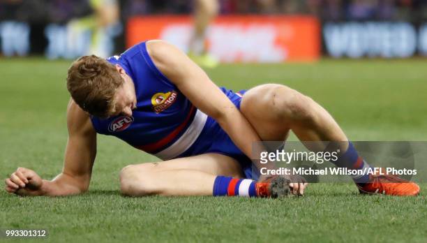 Before his right leg was hooked in a tackle in the second quarter of the Bulldogs’ defeat to the Swans, the 24-year-old had had a strong start to the game. He had also scored an amazing right-foot snap goal from the pocket.